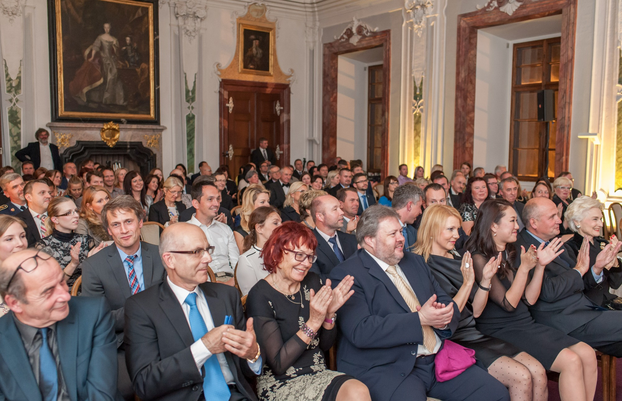 Galavečera se účastní přes 200 hostů z celé ČR a obdivují genius loci Českého muzea hudby, kde využíváme jedinečné schodiště a Hudba Hradní stráže a Policie ČR živě hraje hlavní hudební téma filmu Mission Impossible (foto 14). Ve finále jsme měli 74 firem a Osobností se opět stala dáma, Michaela Bílá Čížková, jednatelka Happy Foto Česko, s téměř 4000 hlasy veřejnosti. Mj. jsme měli tu čest poprvé se setkat s naším dalším podporovatelem, Janem Teplým z Madety.
